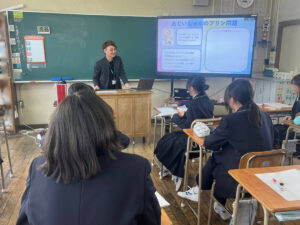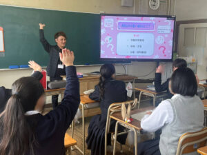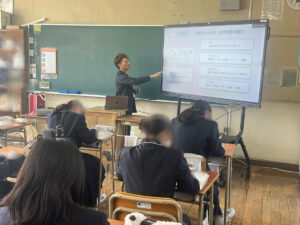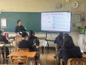 2月6日、高宮中学校にて、ツナグミライ主催の職業体験ガイダンスの一環として、ネクストリンク代表の宮本が1年生の皆さんを対象に「看護師の仕事」について授業を行いました。当日は元気いっぱいの生徒の皆さんに迎えられ、終始あたたかい雰囲気の中での開催となりました。その様子をご報告いたします。