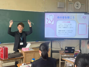 普段は意識しない“自分の体の音”を聞くことで、体が常に働いていること、命の大切さを身近に感じてもらえる時間となりました。